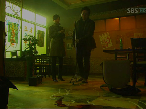 Chefe Choi Jung (seu pai) e é surpreendido pela presença da promotora Jeong